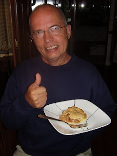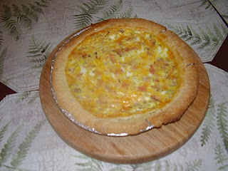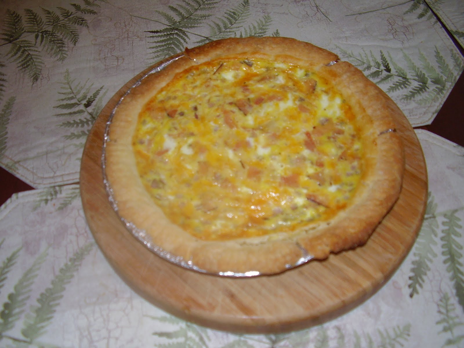 Plusieurs de nos lecteurs croient que la vie de caravaning correspond à manger de la malbouffe et à être au restaurant tout le temps. La réalité pour nous est toute autre. Nous déjeunons tout le temps dans notre VR et lorsque nous sommes en déplacement sur la route, nos temps d'arrêts aux haltes routières nous permettent si la faim est au rendez-vous de concocter de bons petits repas légers. Compte tenu de l'autonomie de notre véhicule nous préparons nos repas du soir même lorsque nous sommes situés dans les stationnements Walmart. Pour ce qui est des repas plus élaborés, nous utilisons le four ou le croque-pot lequel permet de réaliser d'excellents repas maison sans dégager une chaleur importante dans le véhicule. De plus l'odeur de ce repas en préparation nous met l'eau à la bouche et nous rend impatient de le déguster. En comparaison avec notre mode de vie antérieur, notre routine actuelle inclus 2 repas par jour et cela est suffisant. Au menu ce soir, quiche au jambon assorti de frites au four et tranches de bacon. Pour dessert, tarte aux pommes le tout fait maison. Bon appétit.