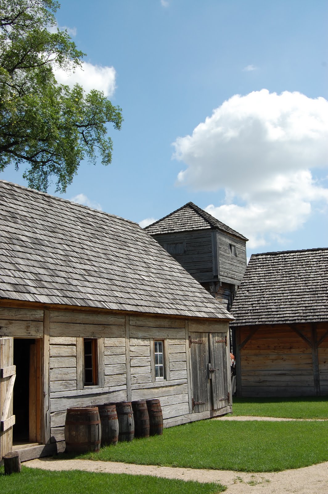 Nous n'avions pas eu la chance de visiter un poste de traite à ce jour et en connaître tous les détails de son fonctionnement. Lors de notre visite à la Maison Louis Riel notre guide nous avait fait mention de la présence de ce Fort lequel selon lui saurait certainement nous intéresser. Alors durant cette semaine de repos dans le Parc Provincial Birds Hill le goût de la découverte fit son apparition et nous avons décidé de prendre la route vers ce nouveau lieu historique. Les premières images que nous avons eu sur le site étaient assez révélatrices de ce que nous allions découvrir. Dès notre entrée dans les mûrs du Fort un guide très coloré portant les habits du temps nous explique la facette historique des lieux. Nous apprenons qu'il n'y avait aucun conflit à cette époque et que le modèle du Fort ne servait qu'à impressionner la population en regard à l'importance et l'ampleur de la compagnie de traite. Le Fort Gibraltar a été construit initialement à la croisée des rivières Rouge et Assiniboine vers les années 1809-10 par la Compagnie du Nord Ouest et reconstruit par la suite ayant été victime de plusieurs incendies. Le Fort servait de point de relais pour y vendre les fourrures et obtenir en échange des biens provenant d'Angleterre. La monnaie d'échange se traitait en peaux de castors ( 1 peau de castor =$1.00) et tous les biens étaient en relation avec cette monnaie. Les peaux de castors étaient recherchées uniquement pour servir à la fabrication des chapeaux haut de forme portés à cette époque en Angleterre. Des centaines de Forts étaient dispersés au fil du territoire. Peu de personnes étaient admises dans le fort, uniquement les personnes invités par le bourgeois qui y était installé. Pour les autres, les transactions se faisaient à l'extérieur des mûrs de l'enceinte. La compagnie de la Baie d'Hudson fut la première à installer des Forts tout autour de la Baie du même nom pour effectuer le commerce de la fourrure avec les habitants, ses bateaux y faisant la navette durant la saison estivale. Vous comprendrez que les distances pouvaient être importantes si vous habitiez tout au Sud de la Province. Pour cette raison la Compagnie du Nord Ouest propriété d'entrepreneurs privés provenant de Montréal descendants d'Écossais pour la plupart installa ses Forts tout au centre du Continent et récupéra au fil de ses 20 premières années d'opération jusqu'à 78% de toutes les traites de fourrure Canadiennes. La Compagnie de la Baie d'Hudson avec ses 130 années d'opération ne pouvait accepter cette situation et des conflits de toutes sortes firent leur apparition. Comme les terres appartenaient à la Compagnie de la Baie d'Hudson cette dernière en 1812 décida d'établir une colonie sous la gouverne de Lord Selkirk en réponse à la construction du Fort Gibraltar. Une petite colonie de Métis chasseurs de bisons dont on y reconnaissait l'ampleur du troupeau à cette époque, de voyageurs canadiens-français, d'écossais et gens des premières nations habitaient déjà la fourche qui se développait à cette époque comme le centre intercontinental de traite des fourrures. Ce fut le début d'une guerre commerciale à finir entre les deux compagnies avec tout ce que cela comporte.