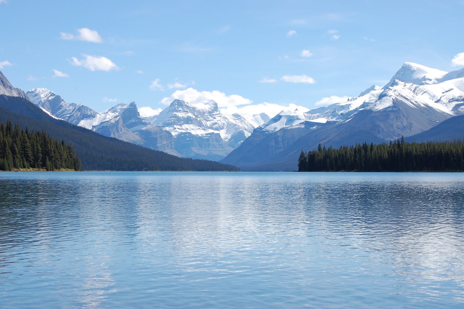 Nous avions lu un article sur le Lac Maligne dans la Presse du samedi le 11 Août 2007 dont nous en avons encore copie lequel affichait une photo du lac et sa petite île Spirit au travers des montagnes en mentionnant que cet endroit était le plus photographié de tous les sites des Rocheuses pour sa beauté et son point de vue exceptionnel. Notre départ vers 9H00 le matin pour cette destination s'est fait sous un ciel gris et très nuageux laissant prévoir de nouvelles averses. Le thermomètre indique 6C supportant le fait que nous ayons utilisé le chauffage dans le motorisé toute la nuit. Nous nous dirigeons vers le centre touristique de Jasper à quelques kilomètres de notre Parc de camping pour obtenir les informations et indications routières devant nous permettre de nous rendre à bon port. Alors carte d'information touristique en main nous prenons la route vers notre premier arrêt soit le Canyon Maligne. Arrivé sur les lieux, nous prenons le sentier qui nous mènera au canyon lequel étant très bien aménagé nous permettra de suivre le trajet sinueux et très profond que la rivière a tracé au fil du temps au travers des parois rocheuses. Visite qui s'avèrera très intéressante et surtout impressionnante. On reprend la route cette fois en direction du lac Maligne situé à quelques 30 Kilomètres du Canyon. Comme je l'avais mentionné précédemment nous n'avons pas été en contact avec aucun paysage montagneux depuis notre arrivé à Jasper et au travers du chemin nous amenant au lac Maligne les montagnes commenceront à faire leur apparition. WOW, OH, WOW à nouveau et à un certain moment donné aucun bruit dans la voiture comme si nous étions tous les deux dans un état de méditation occasionné par le spectacle qui se déroulait sous nos yeux. Le soleil s'est mis de la partie et le paysage s'est éclairé et dévoilé au fur et à mesure que nous avancions vers notre destination. Nos appareils photos ne cessaient de capter ces images irréelles et combien spectaculaires de ce que nous voyions. Plusieurs arrêts en chemin et conversations avec d'autres visiteurs tous aussi ébahis que nous. Nous arrivons donc au stationnement du Lac Maligne et traversons les sentiers nous amenant vers les chalets touristiques et restaurant de la place. Nous étions au fait que des croisières sur le lac étaient disponibles seul moyen de se rendre sur l'île Spirit. Nous nous rendons rapidement au kiosque pour nous informer des horaires et des prix ces derniers étant $55 par personne pour 50 minutes de randonné. Notre premier réflexe sera de refuser de payer un tel prix et nous décidons de nous promener sur les lieux en nous imprégnant des images hors du réel que nous contemplons. La température est idéale, le ciel est bleu et un modèle réduit des montagnes nous démontre la configuration du lac lequel est en parti non visible de l'endroit où nous nous situons. Le spectacle est trop beau pour que nous n'en profitions pas et nous décidons d'acheter nos billets pour la croisière de 15H00 ceci nous laissant assez de temps pour prendre une petite bouffe extérieure assis sur la galerie du restaurant avec vue sur le lac et les montagnes l'entourant. Pendant que Sylvie s'occupe de l'achat de notre repas, je suis assis à l'extérieur à regarder ce tableau irréel de beauté et à ce moment le paysage viens chercher en moi cette vibration de plénitude qui me fera verser des larmes en sanglots..que je m'efforce de cacher ne sachant pas trop comment les retenir ..c'est trop beau... je ne sais pas comment gérer l'effet de cette vision inhabituelle. ( je vibre encore lorsque j'écris ces quelques lignes).