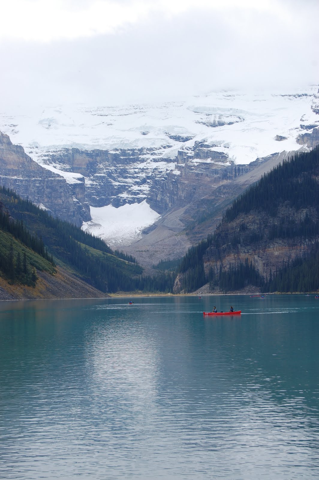 Nous commençons à sentir la pression de la nature à compléter notre périple des rocheuses cette dernière nous ayant offert un beau 2C la nuit dernière et l'image de la neige est de plus en plus présente. Nous nous sommes donc dirigé ce matin de notre site de camping à notre première destination de la journée soit le Lac Louise en parcourant 4KM...ça c'est de la proximité. Arrivé sur les lieux, les premières images que nous avons aperçues étaient celles du Château Lac Louise, immeuble identifié sur toutes les images publiées de ce site enchanteur. Nous prenons le sentier qui part du stationnement et en quelques pas nous sommes devant ce site de rêve entouré de touristes venant de tous les coins de la planète. Nous avons eu le plaisir de bavarder avec un couple de visiteurs provenant du Japon lesquels parlaient très bien l'anglais et voulaient obtenir de l'information sur les sites à voir tout autour. D'être en face de ce lac a été la réalisation d'un rêve pour nous deux mais malheureusement dame nature ne nous a pas permis de voir tous les sommets entourant le lac, le plafond nuageux étant très bas et ce depuis plusieurs jours. L'expérience fut quand même très excitante. Nous reprenons la route vers notre deuxième destination soit le Lac Moraine niché dans la vallée des dix pics lequel a été classé site du patrimoine mondial par l'Unesco. Situé à 14KM de notre site de camping nous avons pris le temps d'admirer le décor qui longeait la route servant d'apéritif à ce que nous allions découvrir sur place. Le lac est d'une dimension raisonnable mais les montagne qui l'entourent sont imposantes, magnifiques et à porté de main ce qui rend cet environnement assez spectaculaire. Sans oublier cette belle eau limpide et turquoise, les sentiers longeant le lac sont magnifiques et agréables à parcourir. Une journée de visite durant laquelle les WOW et les OH ont été à l'honneur.