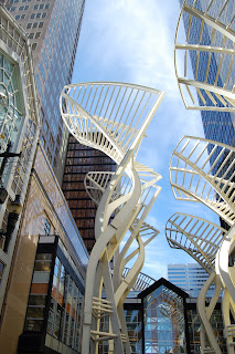 La journée a débuté par la visite du site des Jeux Olympiques d'hiver de Calgary situés à 2KM de notre camping. Le site est assez impressionnant mais l'inactivité actuelle lui enlève un peu de son charme. Nous avons eu quand même du plaisir à le visiter. Par la suite en route vers le centre-ville situé a 10KM de cet endroit. Routes, immeubles, gratte-ciels sont en constructions. Nous avons stationné la voiture près de la tour de Calgary directement au centre de l'activité commerciale. Centre-ville propre, fleuri, aéré et agréable à parcourir offrant plusieurs parcs, rue sans voitures avec musique et terrasses en plus des environnements réservés aux citoyens. Un train de surface circule périodiquement laissant voir que le transport en commun est présent. D'ailleurs la carte de la ville démontre plusieurs trajets disponibles lesquels respectent le fait que la ville s'étend sur une très grande superficie résidentielle tout autour du centre-ville. Une certaine richesse économique se dégage de cette ville par ce que nous avons été témoin. Nous avons marché la ville et profité de ses attraits en cette belle journée ensoleillée.