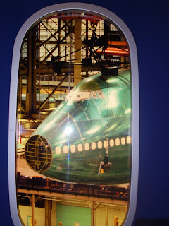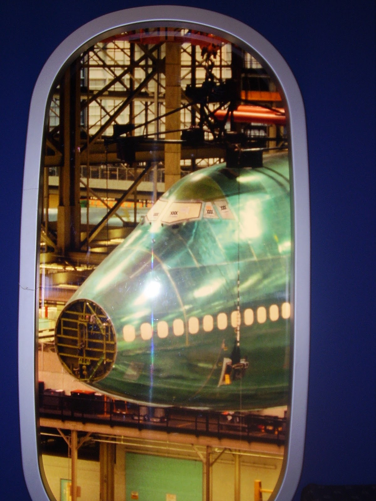 Nous nous sommes rendus à l'usine Boeing de Seattle laquelle construit les Boeing 747,767,777 et le nouveau 787 Dreamliner. Le site est immense. Après avoir franchi les portes du bâtiment accueillant les visiteurs, nous avons acheté nos billets d'admission et nous nous sommes inscrits à la visite guidée de 12H00. Sur place nous pouvions nous promener dans le bâtiment offrant certains items de l'aviation en démonstration, un resto et un magasin vendant des objets promotionnels de Boeing. Dès que nous avons été invités à nous joindre au Tour, aucun téléphone, caméra, jumelles, sac à dos... et autres éléments du genre n'étaient permis. Nous sommes dirigés dans une salle cinéma dans laquelle on nous expliquera comment va se dérouler notre visite de 90 minutes et nous assisterons à la présentation d'un film expliquant l'histoire de Boeing et de son évolution. Par la suite nous embarquons dans un autobus et nous nous dirigeons vers le plus grand building en superficie au monde dans lequel on fait l'assemblage simultanément dans différentes sections du bâtiment de tous les modèles d'avions précédemment énumérés. Arrivés sur place nous empruntons un long corridor sous terrain qui nous amènera vers un immense ascenseur ce dernier nous dirigeant à l'étage surplombant tous les appareils en construction. Il est très impressionnant de voir les postes de travail associés à l'assemblage des avions qui avancent dans le bâtiment selon les étapes de construction complétés. Une vraie chaîne de montage. Tout y est MÉGA...... Même le bâtiment où l'on peinture les avions selon des techniques et des équipements très sophistiqués. Ce village qu'est l'usine de montage embauche 30,000 employés, offre des services de garderies, de restauration, de médecin, de pompiers........ La fabrication des pièces d'avion, même des fuselages se fait maintenant dans différents pays du monde et transportés sur place par camions, trains, bateaux, avions.