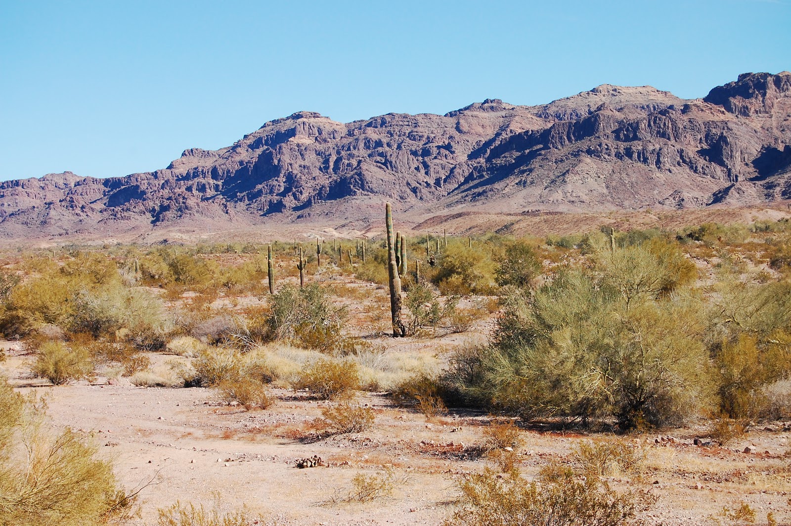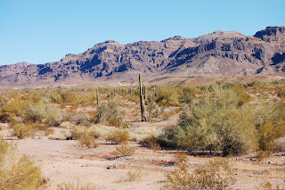 Dès le début de notre voyage nous étions impatients de nous rendre dans le désert et d'y admirer le décor. Nous avons pris la route en direction de Quartzsite laquelle ville se situe plus au nord à près de 120km de traversé de désert pratiquement en ligne droite de Yuma. Quel décor surprenant dans lequel on y voit cactus, des horizons à perte de vue, des montagnes de couleurs chaudes et des plaines assez dénudés. Nous avons pris le temps de nous arrêter en route pour nous imprégner de ce décor très différent de tout ce que nous avons connu à ce jour. Lors de ce voyage nous savions que la ville de Quartzsite préparait son méga rassemblement annuel de motoriste faisant en sorte que cette ville de 3000 habitants reçoive plus d'un million de visiteurs durant les 2 dernières semaines de Janvier. Le camping « Bondocking » est présent tout autour du site à l'intersection de l'autoroute 95 et de la 10. Le camping sauvage sur ces terres Gouvernementales est permis gratuitement pour 14 jours sur des immenses lots identifiés en conséquence et une passe annuelle pour y camper en longues périodes entre les mois de septembre et avril est offerte pour le prix de $180. Nous nous sommes arrêté sur l'un de ces sites pour prendre de l'information étant intéressé à vivre cette expérience de camping dans le désert éventuellement. Comme notre planification de déplacement pour les prochaines semaines est déjà établi, ce projet sera conservé pour une prochaine année.