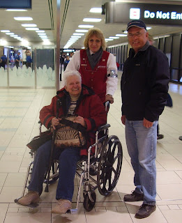 Nous avons accueilli notre grande voyageuse mercredi à l'aéroport de Phoenix. Vous vous rappellerez la tempête qui a sévi tant à Toronto ville de transit pour son vol qui partait de Québec vers Phoénix que presque dans tous les États Américains. Eh bien, rien ne pouvait l'empêcher de venir nous rendre visite en Arizona pour ce nouveau périple d'un mois.
