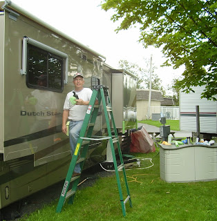 Bien que nous ayons eu du bon temps depuis notre retour au Québec, les semaines se succèdent rapidement nous ramenant à la réalité que nous devrons repartir à l'automne vers des destinations sans hiver. Alors pourquoi ne pas prendre quelques heures pour planifier notre prochain voyage. Comme nous n'aimons pas être à la dernière minute et que nous savons qu'un voyage réussi demande une certaine préparation, nous avons donc fait le tracé de notre prochain trajet et fait les réservations de nos campings longues durées. Nous avons fait la mise à jour mécanique de notre motorisé et lui avons fait une beauté extérieure par l'application manuelle d'un « Glaze » et d'une cire longue durée pour le protéger des méfaits du soleil. Pour ceux et celles qui ont visionné le film « Karaté Kid », vous comprendrez dans quel état physique je me suis retrouvé suite aux mouvements circulaires associés à l'application des produits et du polissage après quatre jours intenses de travail. Mais le résultat final en a valu la peine. Malgré le fait que nous ne soyons pas pressé de repartir, d'être prêt pour ce nouveau départ nous rend un peu fébrile et nous ramène en tête de belles images de nos anciennes destinations. Alors à vous qui suivez nos périples, soyez prêts pour notre nouvelle aventure.